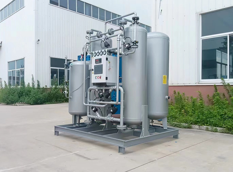 變壓吸附制氧裝置以潔凈的壓縮空氣為原料,采用高品質(zhì)的沸石分子篩作為吸附劑,在一定的壓力下,從空氣中制取氧氣。經(jīng)過純化干燥的壓縮空氣,在吸附器中進(jìn)行加壓吸附、減壓脫附。由于空氣動(dòng)力學(xué)效應(yīng),氮在沸石分子篩微孔中擴(kuò)散速率遠(yuǎn)大于氧,氮被沸石分子篩優(yōu)先吸附,氧在氣相中被富集起來,形成成品氧氣。然后經(jīng)減壓至常壓,吸附劑脫附所吸附的氮?dú)獾入s質(zhì),實(shí)現(xiàn)再生。一般在系統(tǒng)中設(shè)置兩個(gè)吸附塔,一塔吸附產(chǎn)氧,另一塔脫附再生,通過PLC程序控制器控制氣動(dòng)閥的啟閉,使兩塔交替循環(huán),從而取得純度較高的氧氣(93%±3%)。